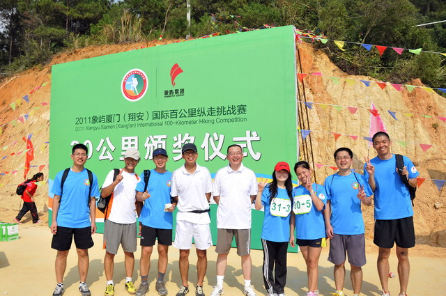 30公里縱走賽是組委會特別為業(yè)余組的選手開設(shè)的,分為團隊賽和個人賽,終點設(shè)在翔安的準提寺。我與同事施閩南、丁奕峰和賀曉娟組成了“閩南一隊”。