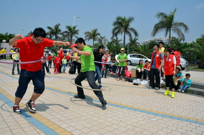 陽(yáng)光明媚、海浪輕拍,大雨洗滌過(guò)的海濱分外清新。員工和官兵代表們絡(luò)繹不絕、配合默契撿拾木棧道沿途垃圾,志愿者紅色馬甲與海軍藍(lán)色制服錯(cuò)落分布,構(gòu)成海灘一道獨(dú)特亮麗的風(fēng)景線。員工子女們也顧不得滿頭大汗,興沖沖地?fù)炱鸨缓K疀_上岸的雜物,用心體會(huì)著環(huán)保的理念和勞動(dòng)的快樂(lè)。音樂(lè)廣場(chǎng)上的拔河比賽和趣味游戲?qū)F(xiàn)場(chǎng)氣氛推向高潮。來(lái)自集團(tuán)和海軍南方局的16支代表隊(duì)奮力拼搏,拉拉隊(duì)員激情吶喊,充分展現(xiàn)了廣大員工和現(xiàn)代軍人團(tuán)結(jié)拼搏的精神風(fēng)貌。經(jīng)過(guò)激烈角逐,象嶼碼頭、海軍南方局代表隊(duì)拔得頭籌,分獲甲、乙組冠軍。由貿(mào)易、建設(shè)、速傳、資產(chǎn)四家工會(huì)精心準(zhǔn)備的趣味游戲吸引了眾多員工及家屬參與,“龍鳳戲珠”、“呼啦行進(jìn)”、“勇闖長(zhǎng)繩”、“向快樂(lè)出發(fā)”等環(huán)節(jié)異彩紛呈,歡呼聲、叫好聲,高潮迭起。