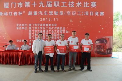 11月4日,由廈門市勞動(dòng)競(jìng)賽委員會(huì)主辦,象嶼集團(tuán)工會(huì)承辦的廈門市第十九屆職工技術(shù)比賽超重型汽車駕駛員(高級(jí)工)項(xiàng)目A類比賽,在象嶼保稅區(qū)二期落下帷幕。來自廈門市全行業(yè)具有規(guī)模的16家港口集裝箱運(yùn)輸企業(yè)的55名高手報(bào)名參賽,代表廈門4000多名從業(yè)司機(jī)爭(zhēng)奪行業(yè)“狀元”稱號(hào)。