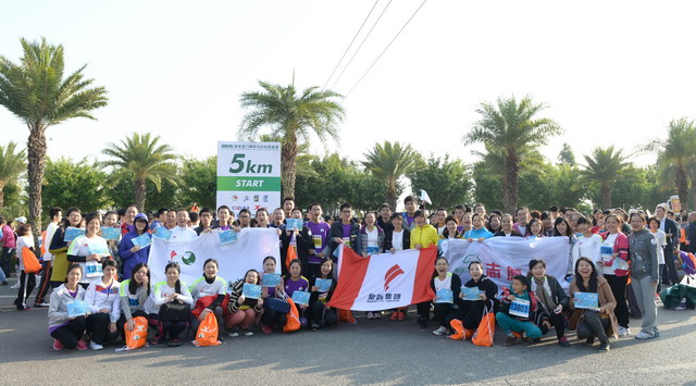 盡管冬日清晨有些凍人,但這絲毫沒(méi)有“凍”壞象嶼人的熱情。一進(jìn)入賽場(chǎng),大家就摩拳擦掌,躍躍欲試。今年的馬拉松對(duì)象嶼跑團(tuán)而言,有著特殊的意義,這不僅是一場(chǎng)健康跑,更是一場(chǎng)公益跑。此次比賽跑道恰好與火燒嶼隔海相望,由集團(tuán)捐資建立的中華白海豚救護(hù)繁育基地正坐落島上。白海豚的可愛(ài)形象也隨之出現(xiàn)在象嶼“跑男”“跑女”的前胸、后背。公益旗幟、白海豚公益宣傳貼紙,紅帆logo,以及我們朝氣蓬勃的象嶼跑團(tuán)組成了一道“有愛(ài)”的風(fēng)景線。這也吸引了周圍許多馬拉松參賽者的目光,有的參賽者甚至圍上前來(lái)詢問(wèn)是否也能加入其中。于是,象嶼救助白海豚的公益之舉隨著象嶼人的奔跑也一路傳播開(kāi)來(lái)。