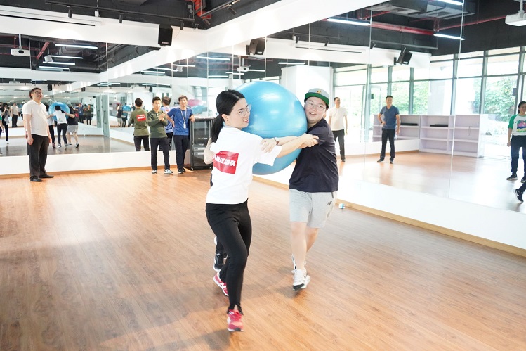 此次活動共設置了同頻共振、薪火相傳、步步為營等9個競賽項目,向全體運動員傳遞快樂工作、健康生活的理念。雖然是趣味運動,但各個項目都包含團隊協(xié)調(diào)能力、個人力量、速度、控制力、協(xié)調(diào)能力等諸多體能與心智要素.對大家的身體素質(zhì)和團隊協(xié)作都有巨大的考驗。最激烈的要屬“心心相印——瑜伽球運輸競速賽”。運動員們團結(jié)協(xié)作,夾著瑜伽球從起點到終點,運輸過程驚心動魄、“險”象環(huán)生,活動現(xiàn)場的氣氛也被大家的活力點燃。
