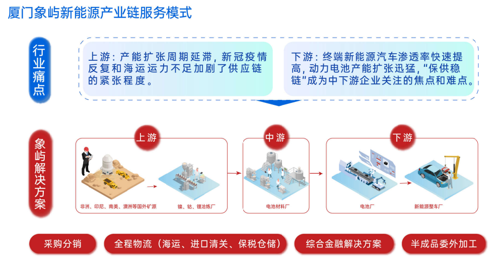 象嶼股份始終堅持全產(chǎn)業(yè)鏈經(jīng)營服務(wù),踐行資源端國內(nèi)外雙引擎發(fā)力,國際圍繞澳洲、非洲和南美資源富集地,國內(nèi)重點布局青海、四川,打通礦產(chǎn)品到半成品再到下游產(chǎn)成品的加工通路,有效串聯(lián)海內(nèi)外全鏈路客戶,打造了全程供應(yīng)鏈綜合服務(wù)方案。